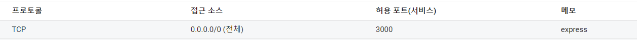 위와 같은 내용을 추가해준다. TCP프로토콜을 이용하면 어디서든(0.0.0.0/0) 3000번 포트로의 접근을 허용한다는 얘기이다.