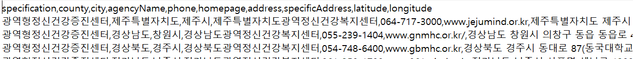 딜리미터(구분자)가 쉼표(,)로 구성된 파일로 아래와 같이 메모장으로 볼 수 있거나 엑셀로 볼 수 있다.