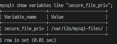mysql>show variables like "secure_file_priv";