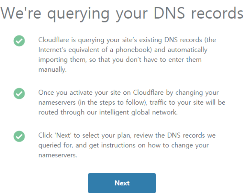 CloudFlare에서 제안한 네임 서버를 도메인을 구매한 사이트에서 추가해야한다.