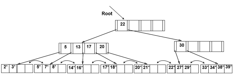 동적인 트리로 데이터의 삽입, 삭제에 의해 트리의 구조가 변경될 수 있다. 리프 페이지의 노드들은 앞, 뒤 링크로 연결되어 있으며 높이 균형을 유지한다.