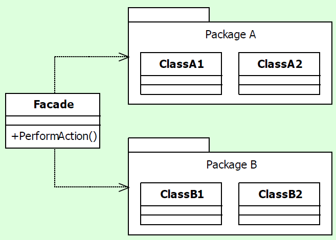 위처럼 복잡한 코드는 Facade 내부에서 처리하고 실제 사용하는 Example 클래스 측에서는 간단하게 객체 생성 후 메서드만 호출하면 된다. 이를 통해 복잡한 과정이 Facade(외관)에 의해 가려지게 되었다.