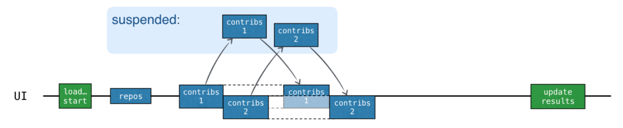 다시 github예제로 돌아와서, 새로운 코루틴에서 각 contributors를 요청할 때 모든 요청은 비동기적으로 시작된다. 새로운 요청은 이전 요청에 대한 응답의 결과가 도착하기 전에 전송될 수도 있다.